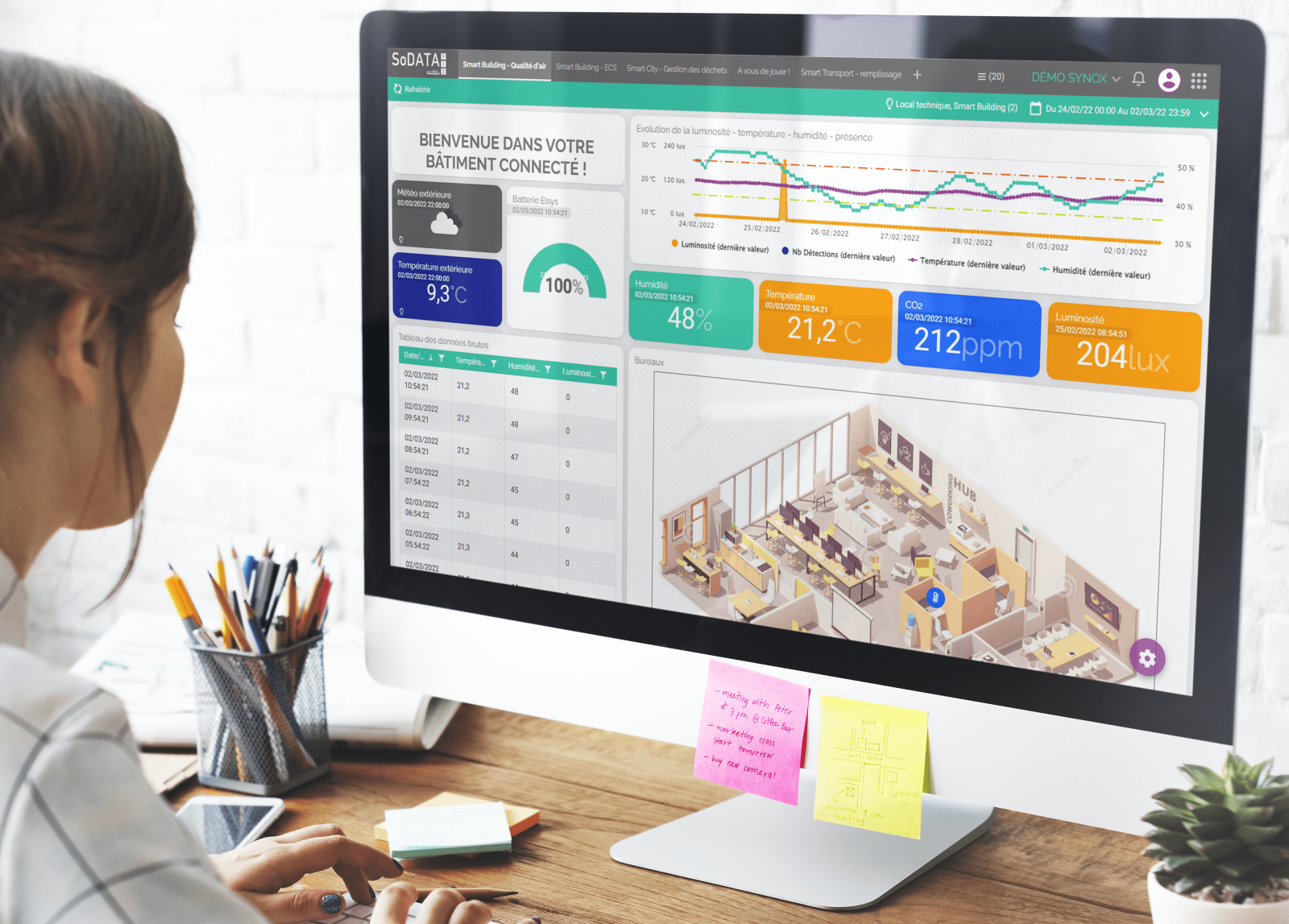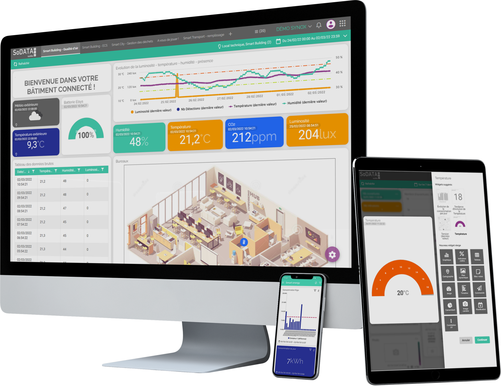 Avec nos plateformes SoM2M#IoT et SoDATA#Viz, les collectivités connectent leurs objets (capteurs, automates, passerelles, cartes SIM), supervisent leurs équipements en temps réel et transforment les données en tableaux de bord, alertes et scénarios de pilotage adaptés aux enjeux métiers.